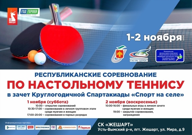 С 1 по 2 ноября пройдут Республиканские соревнования по настольному теннису в зачет Круглогодичной Спартакиады "Спорт на селе".