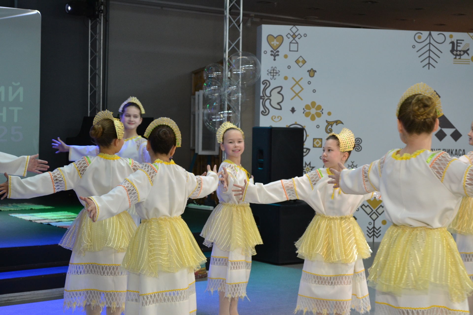 Ансамбль народного танца "Шондi" сыктывкарской Детской школы искусств выступил перед аудиторией с музыкальным номером, который придал праздничности атмосфере.