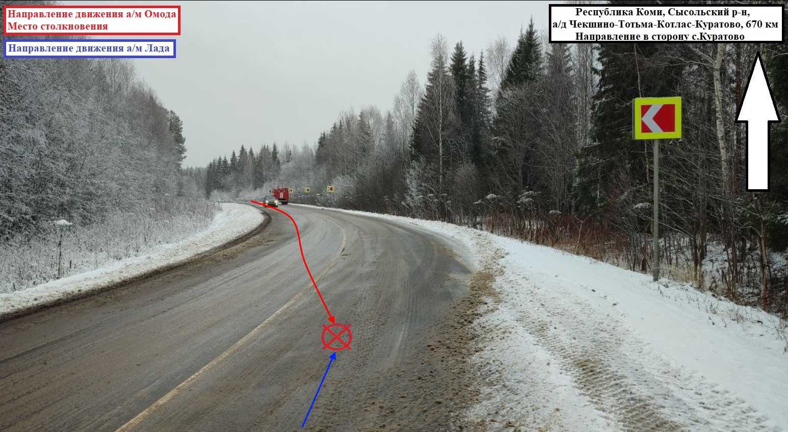 В Сысольском районе ДТП произошло в 12:57. Женщина 1970 года рождения, управляя автомобилем OMODA, двигалась по автодороге Чекшино - Тотьма - Котлас - Куратово со стороны Куратово в сторону Котласа. На 670-ом километре дороги водитель не справилась с управлением, в результате чего выехала на сторону, предназначенную для встречного движения и совершила столкновение с "Ладой Веста". Пострадала пассажир "Лады" - девушка 2008 года рождения. Она получила черепно-мозговую травму, сотрясение мозга, ушиб грудной клетки и левого локтевого сустава. Госпитализирована, в момент аварии была пристегнута. Стаж водителя OMODA - с 2007 года.