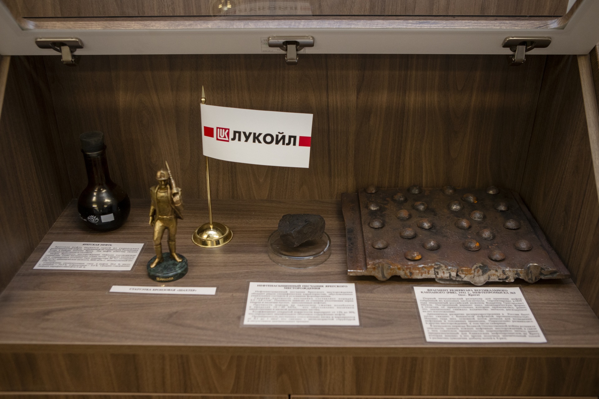Кабинет посвящен истории становления нефтяной отрасли Коми - ведь специалистов для нее здесь, на базе горного техникума, начали готовить еще в 1932 году.