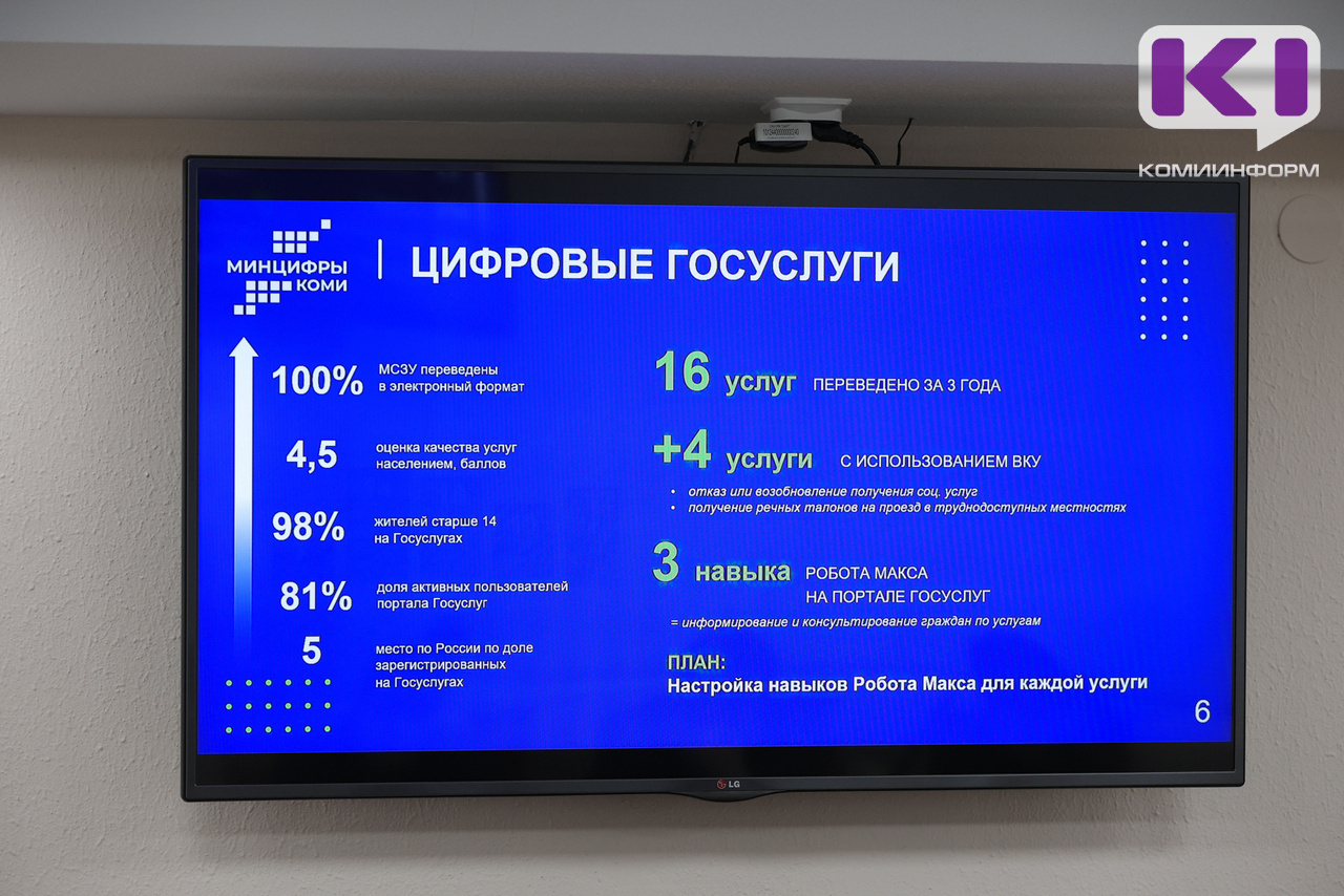 Республика Коми занимает пятое место в России по количеству зарегистрированных пользователей на портале госуслуг, при этом 81% из них являются активными. Об этом в ходе рабочего совещания в Госсовете Коми по госпрограмме "Информационное общество" сообщил министр цифрового развития региона Денис Мчедлишвили.