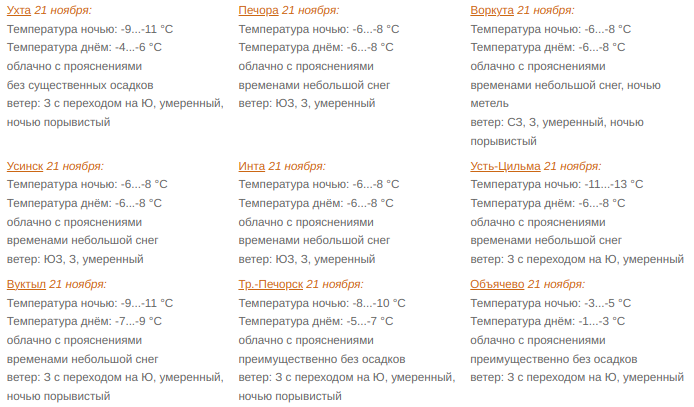 Прогноз погоды по республике на 21 ноября подготовил Коми ЦГМС.