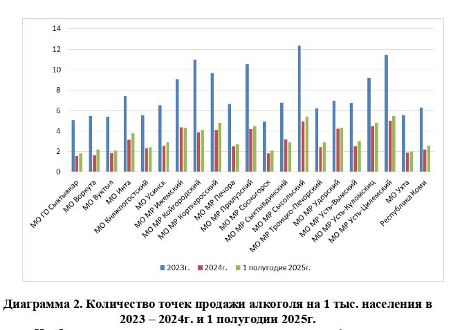 По данным Министерства здравоохранения Российской Федерации Республика Коми занимает лидирующие позиции по потреблению алкогольной продукции на душу населения (в литрах этанола) и распространенности потребления табака в возрасте 15 лет и более среди регионов РФ.