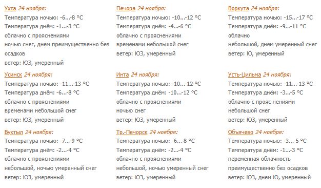 Прогноз погоды по республике на 24 ноября подготовил Коми ЦГМС.