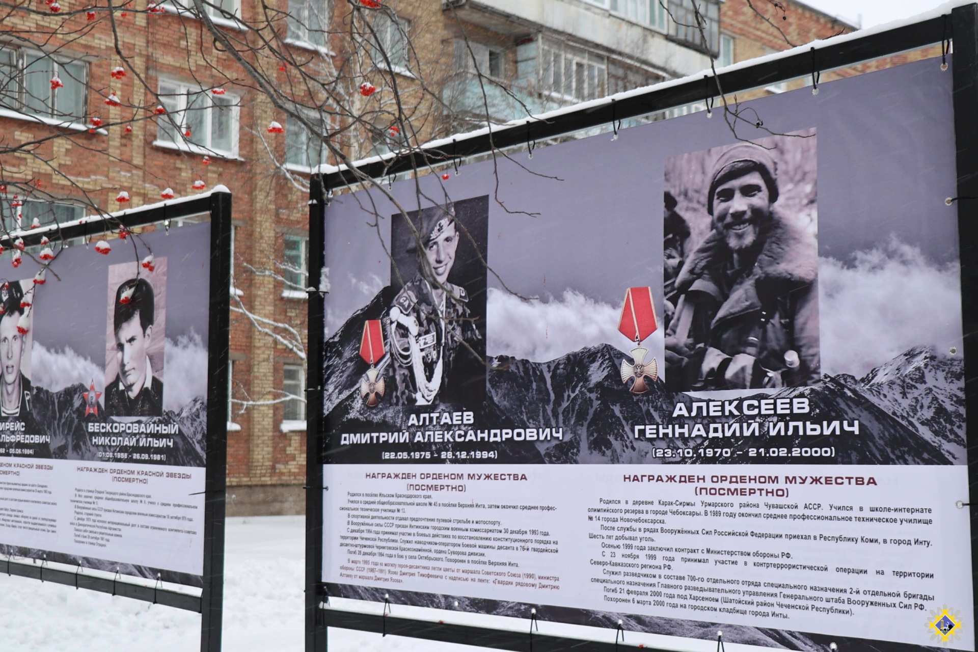 На билбордах - изображения интинцев-героев Афганской и Чеченской войн, а также локальных конфликтов, которые погибли, отстаивая честь и свободу Родины.