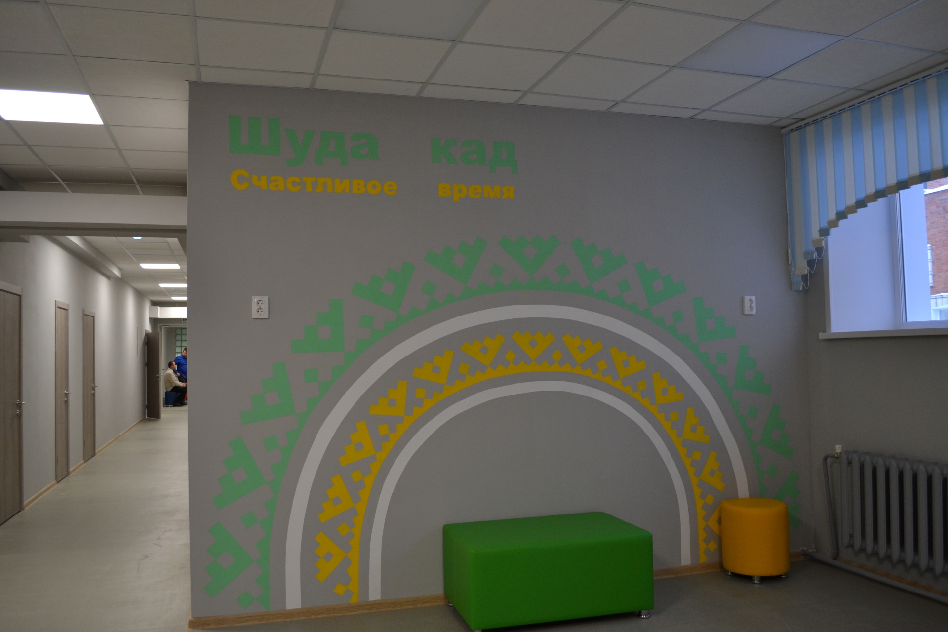 Среди обновленных помещений школы – актовый и спортивный залы, пищеблок, новые кабинеты биологии, информатики, физики, коми языка и другие кабинеты. В классах полностью заменена мебель. Оформление выполнено в едином стиле, разработанном для всех школ по поручению главы Коми Ростислава Гольдштейна. В дизайне учтен коми колорит – стены украшают национальные узоры.