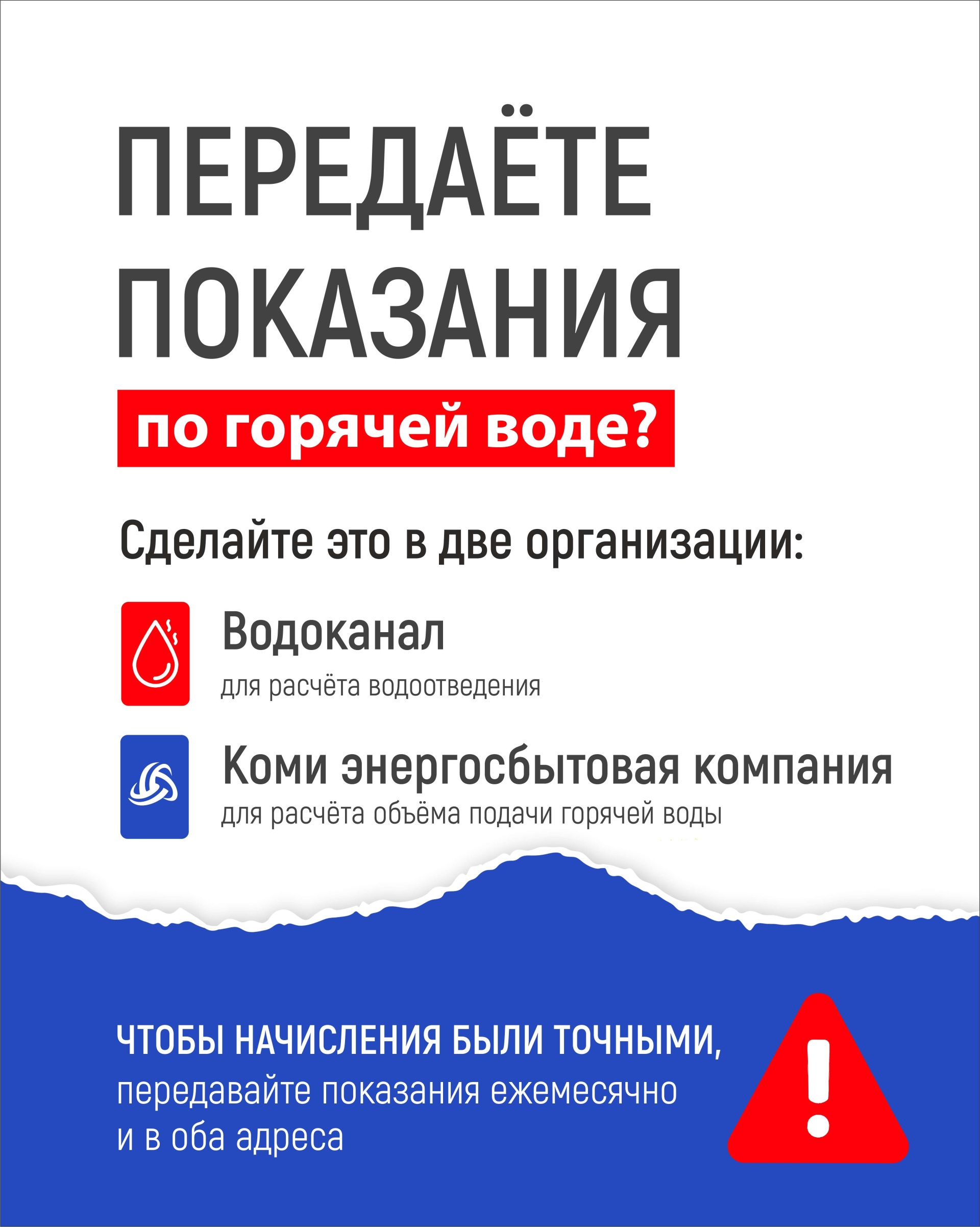 Показания приборов учёта горячей воды необходимо передавать не только в городские водоканалы, но и в "Коми энергосбытовую компанию".