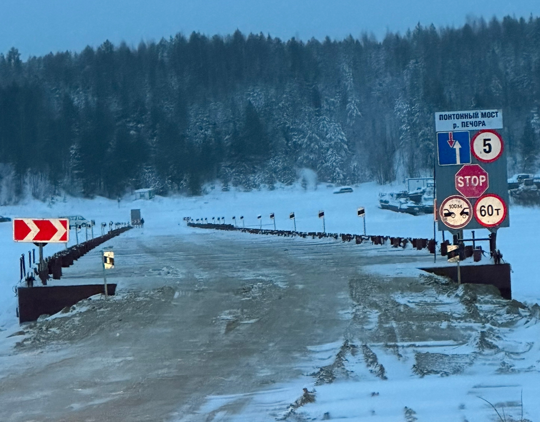 Подписан акт о завершении монтажа понтонного моста через реку Печора. Переправа готова к эксплуатации, что позволяет возобновить движение транспорта в полном объеме.