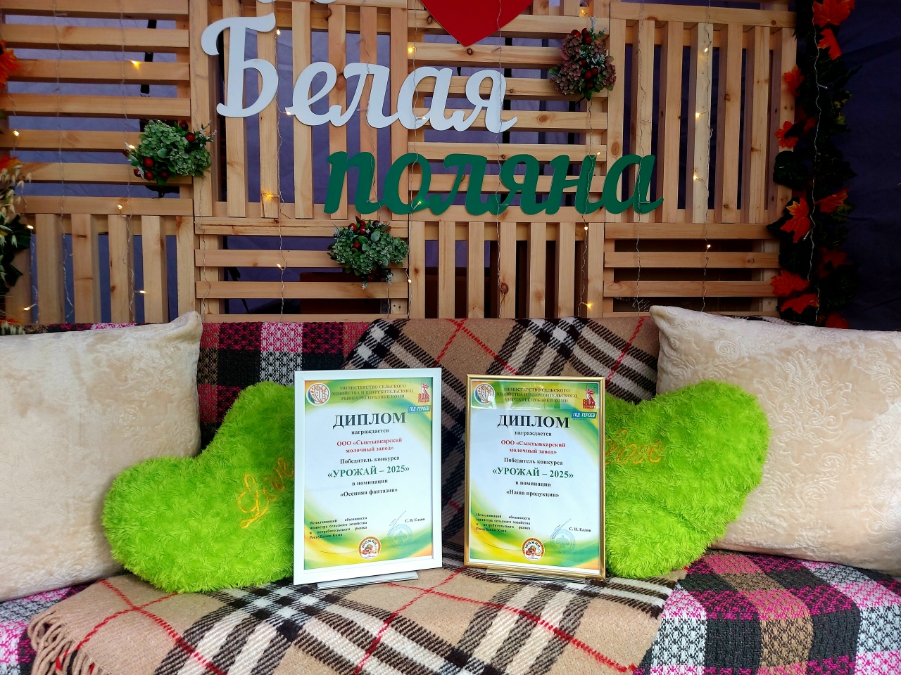 Продукция Белая поляна – ежегодный и многократный дипломант и лауреат конкурсов качества. 2025 год не исключение - Сыктывкарский молочный завод вновь награжден почетными дипломам. В программе "Лучшие товары и услуги Республики Коми" и Всероссийском конкурсе Программы "100 лучших товаров России" – отмечена Сметана с м.д.ж. 15%.