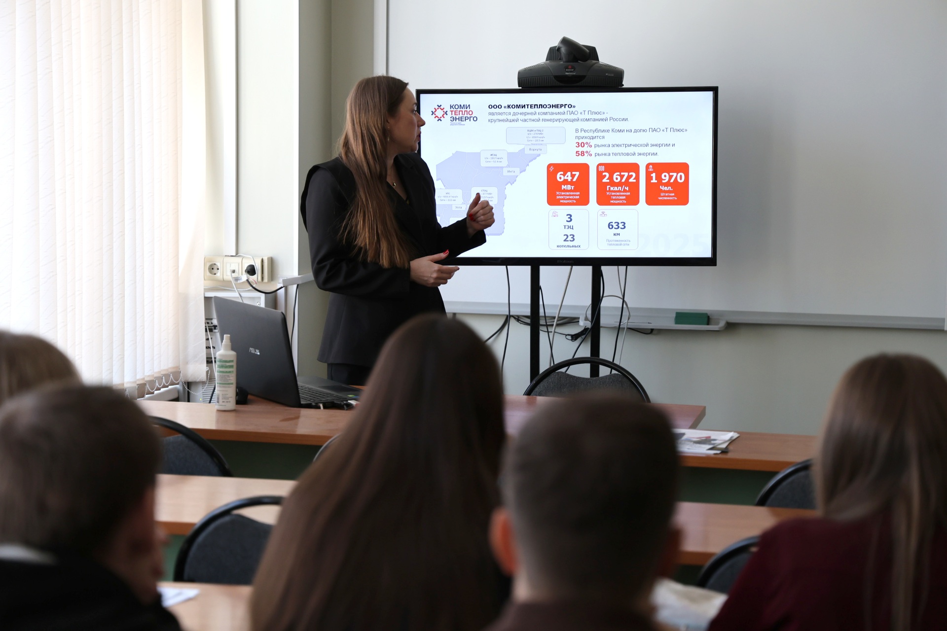 Заместитель главного инженера "Комитеплоэнерго" Максим Малышев и специалист по охране труда Сыктывкарских тепловых сетей Наталья Стафеева познакомили ребят с деятельностью компании, рассказали о том, какие карьерные возможности она даёт молодёжи, и о различных профессиях, востребованных в энергетике.