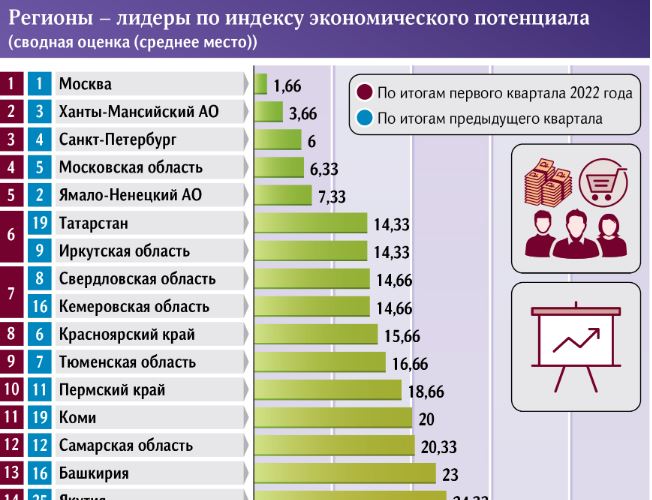 Всего в исследование вошло 44 субъекта, которые делят между собой 35 мест.