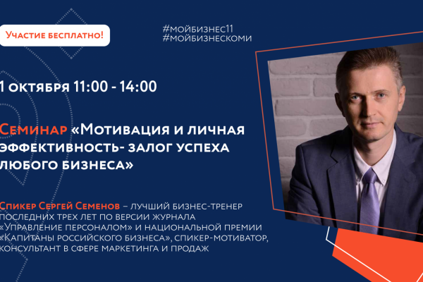 Спикером выступит Семенов Сергей – лучший бизнес-тренер последних трех лет по версии журнала "Управление персоналом" (top-personal.ru) и национальной премии "Капитаны российского бизнеса".
