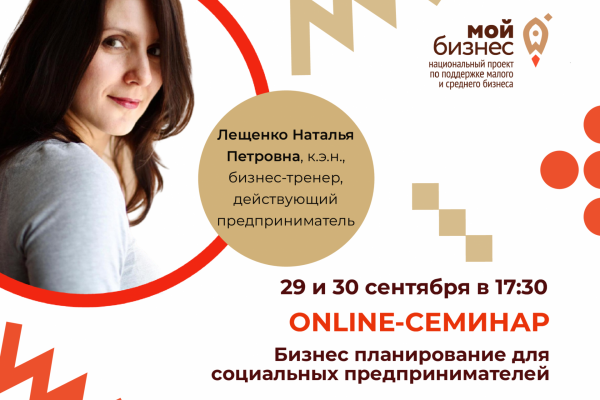 29 и 30 сентября c 17:30 до 19:30 в online-формате состоялся бесплатный семинар на тему "Бизнес-планирование для социальных предпринимателей".