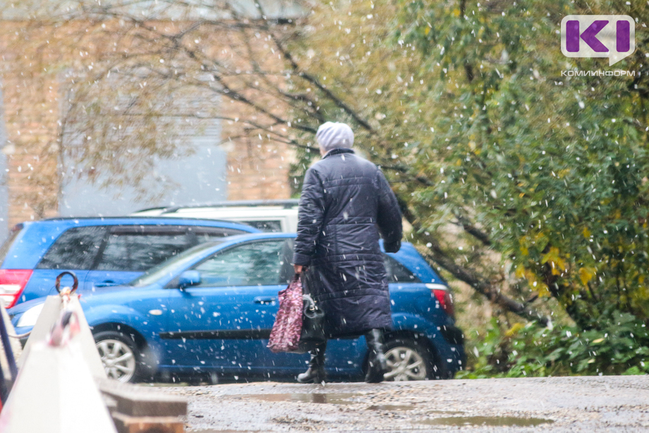 В Сыктывкаре мокрый снег, днем 0...-2°С. На дорогах гололедица.