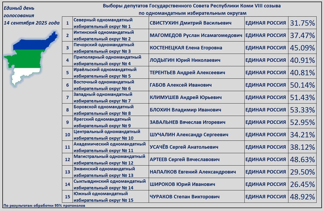 Также Избирком Коми предоставил итоги Дистанционного электронного голосования по одномандатным округам.