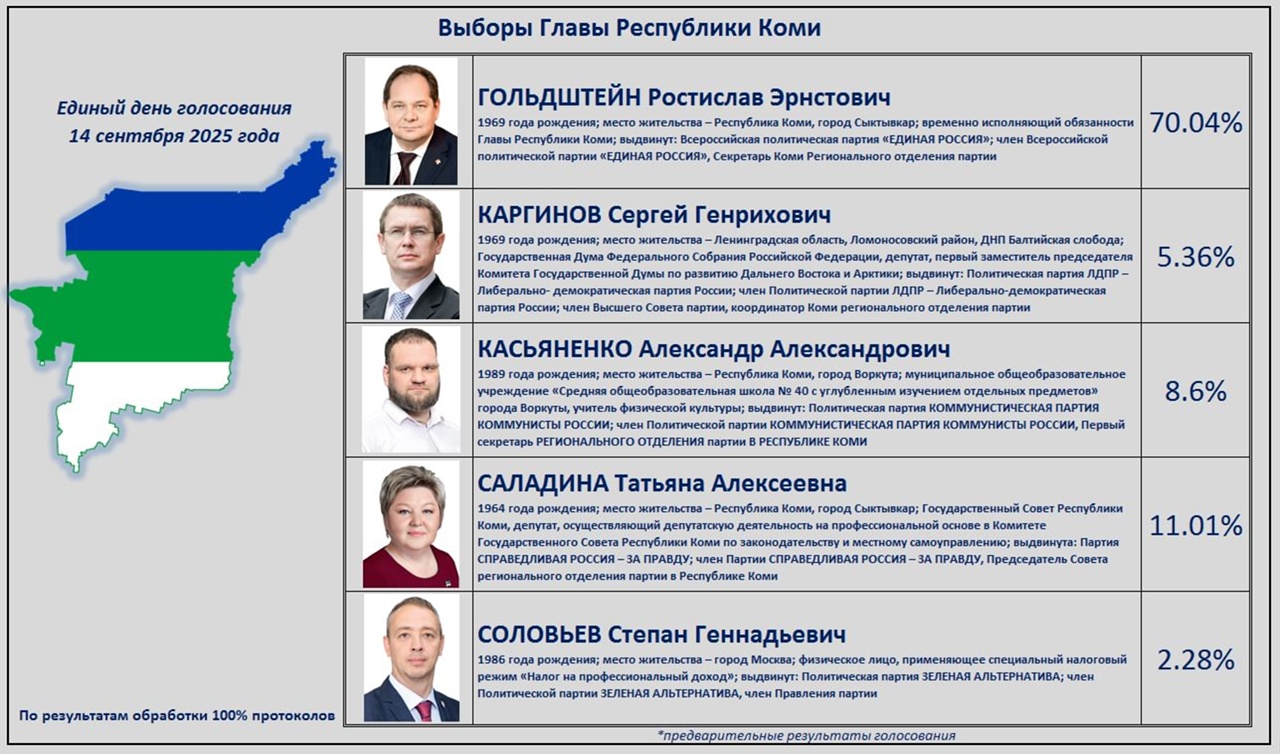 Избирком РК опубликовал промежуточные данные выборов главы Коми.