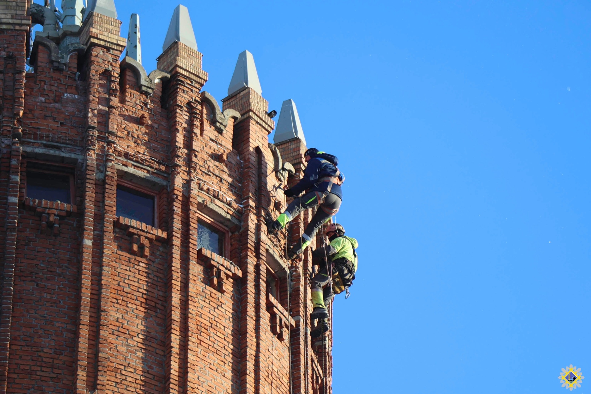 Строители уберут аварийный кирпич, который начал разрушаться и может травмировать людей, после чего повесят на башне защитную сетку.