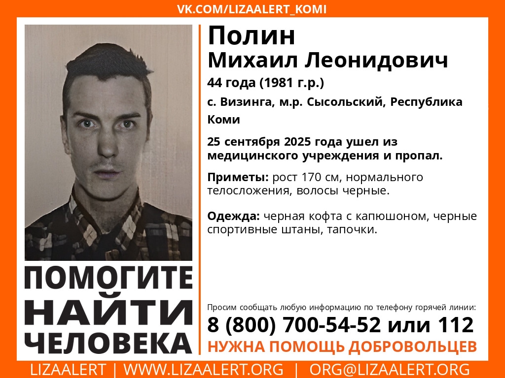 О местонахождении Михаила Полина ничего не известно с 25 сентября.