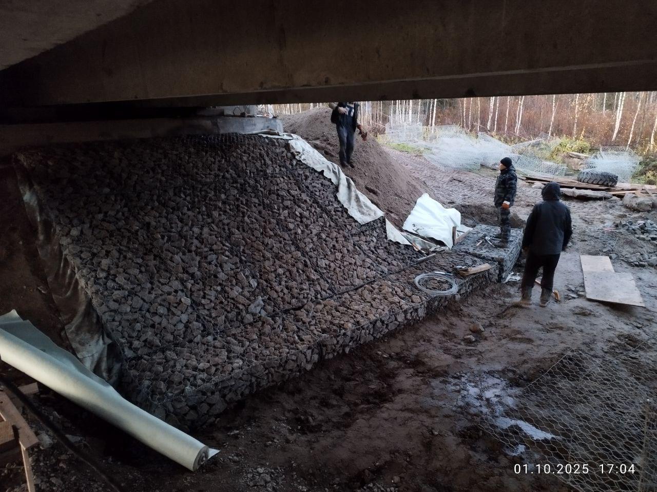 Завершены работы по одной половине проезжей части, включая устройство подферменников, монтаж балок пролетных строений, укладку выравнивающего слоя, ремонт ригелей и устройство шкафной стенки.