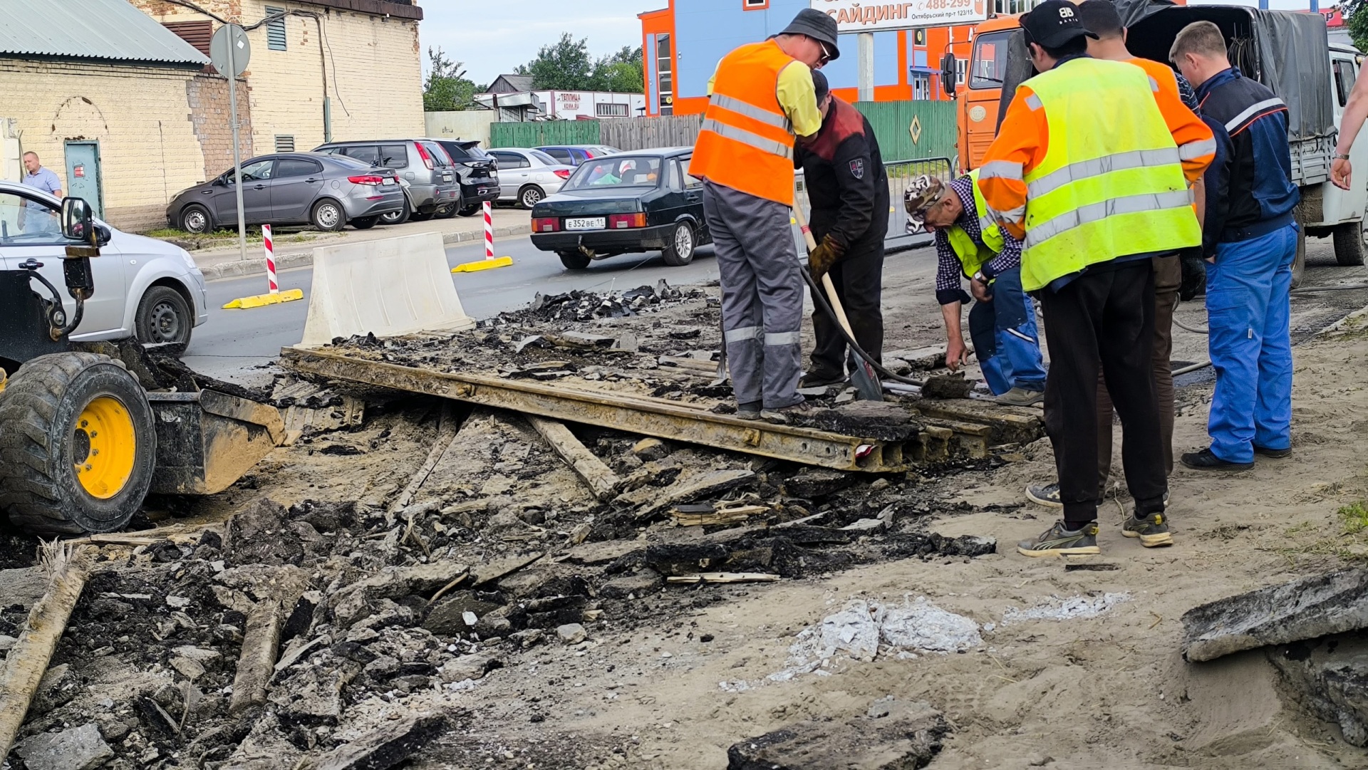 На Октябрьском проспекте Сыктывкара убирают рельсы от старого железнодорожного переезда