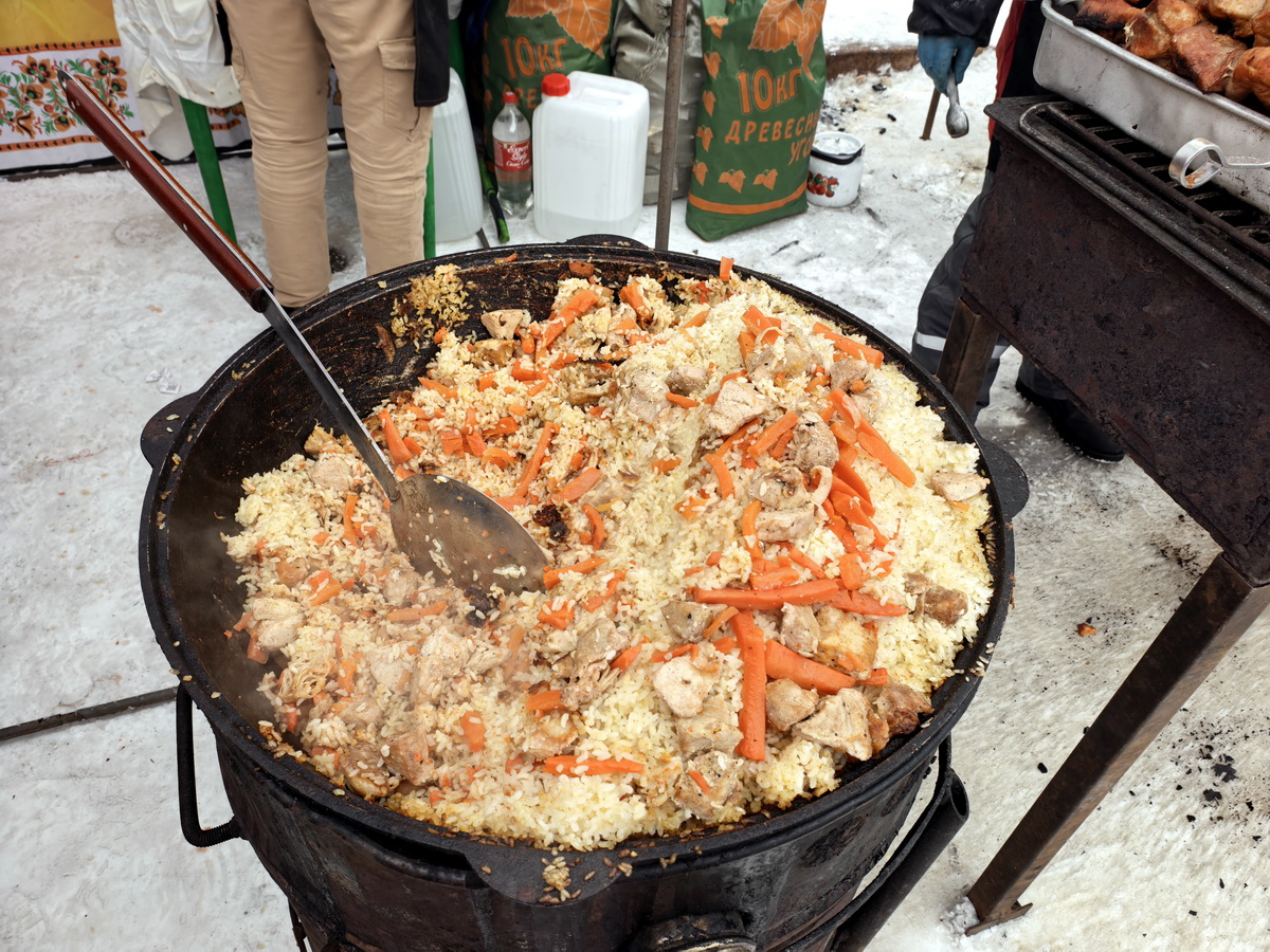 Горожанам пришлось припасти толстый кошелек: блины можно было отведать за 50 руб. штука, шашлык от 250, плов от 200 руб. за 100 г.