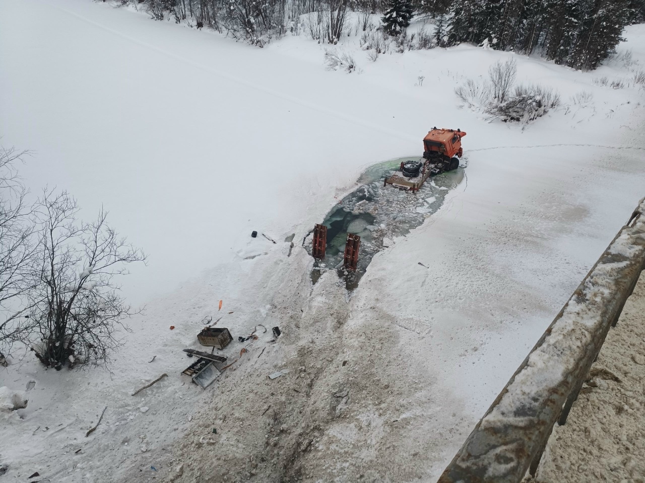 Под Ухтой КамАЗ пробил ограждение и съехал в реку