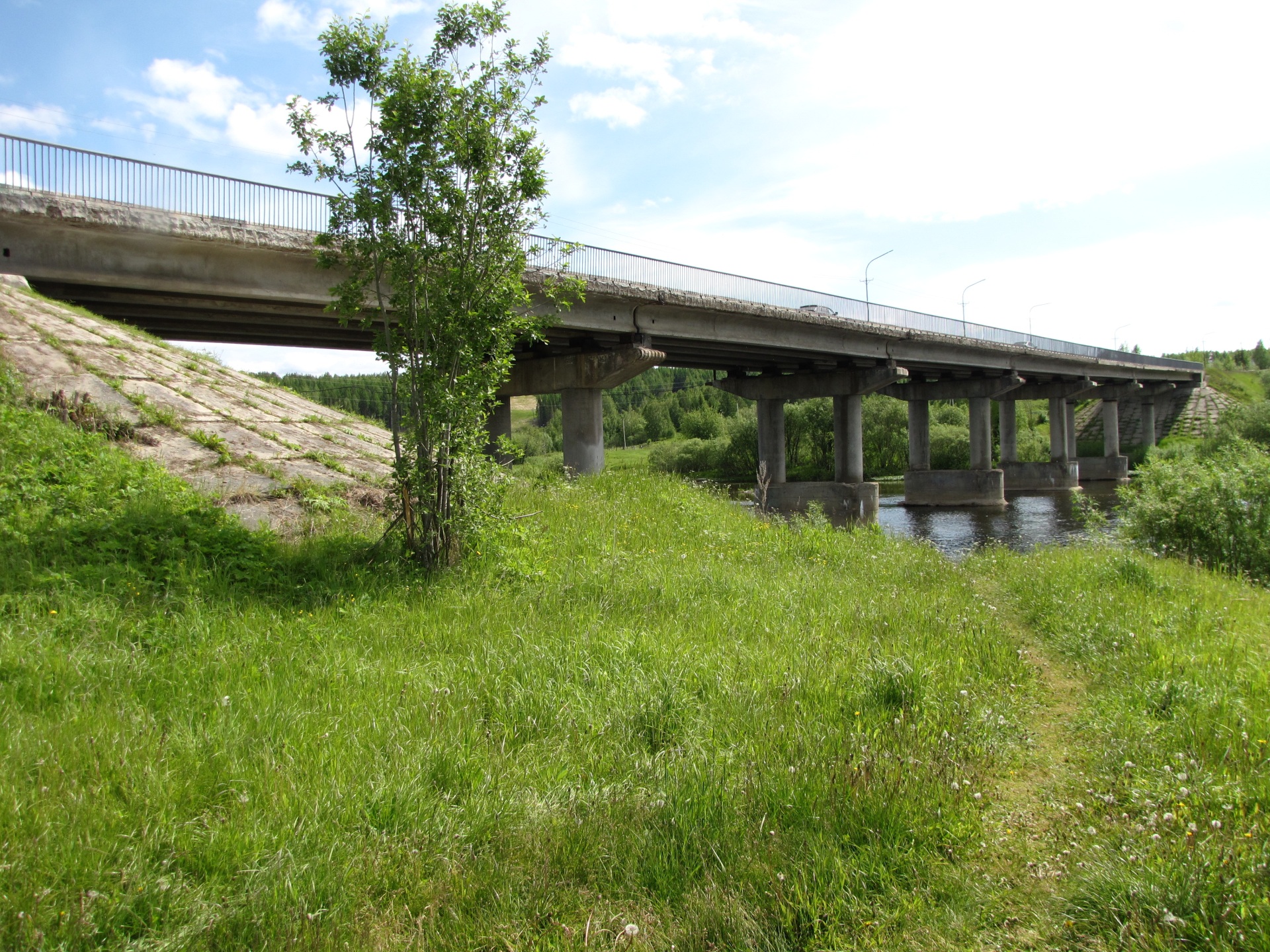 Мост протяженностью 51,16 метра расположен на втором километре дороги Усть-Кулом – Усть-Нем – Мыелдино, которая примыкает к трассе Сыктывкар – Троицко-Печорск.