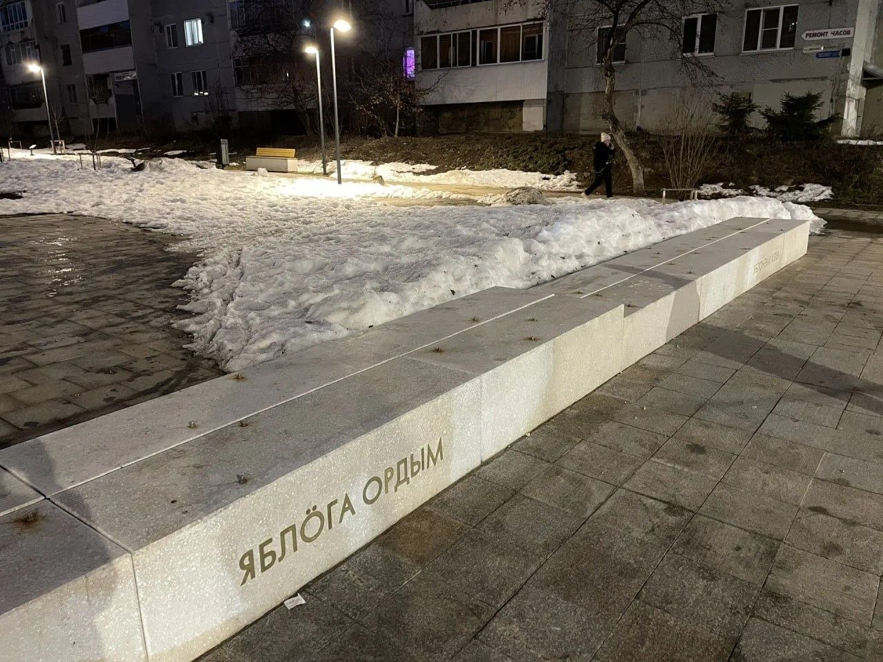 Вандалы вновь похитили золотые яблоки, установленные на благоустроенной территории.