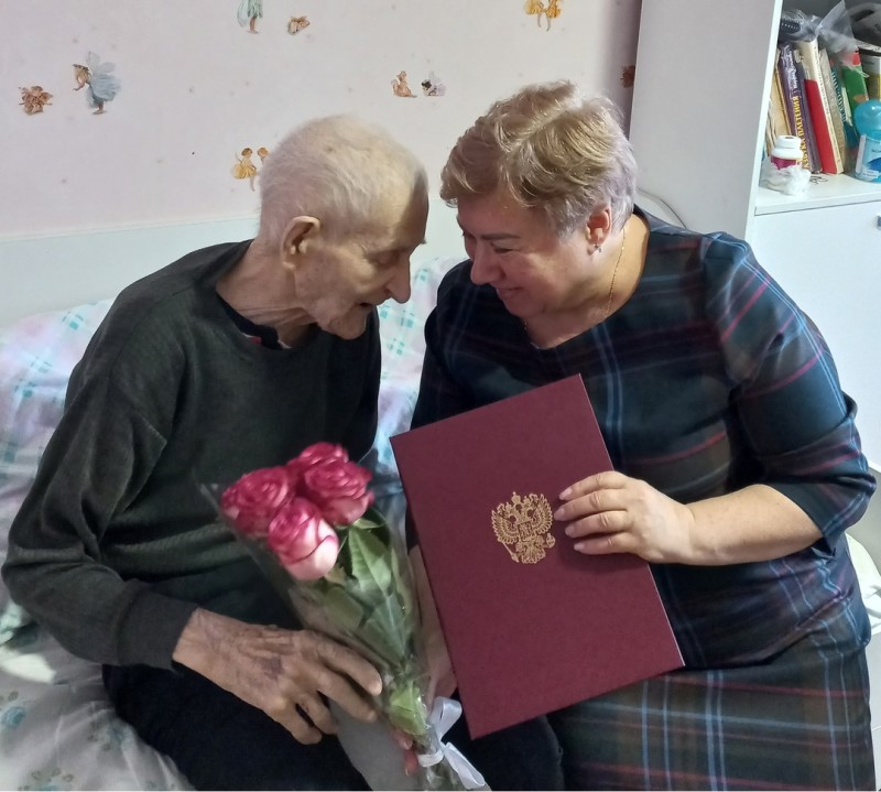 Юбиляру торжественно вручили поздравительное письмо от президента Владимира Путина, юбилейную медаль и подарки.