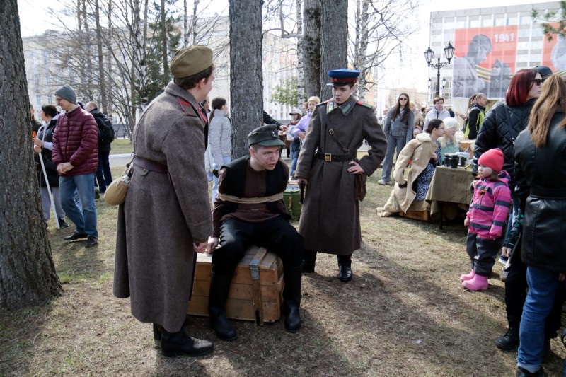 Через торговые ряды плова и шашлыков горожане плавно переходили в Кировский парк, где в этом году двери открыла Национальная галерея Коми. Здесь в честь 9 мая стартовала акция "Весна Победы", которая ждет посетителей до 17 часов. В программе: тематические мастер-классы, открытый кинопоказ, аквагрим, фотозоны, бесплатные экскурсии на временных выставках и постоянной экспозиции и акция "Песни Победы".