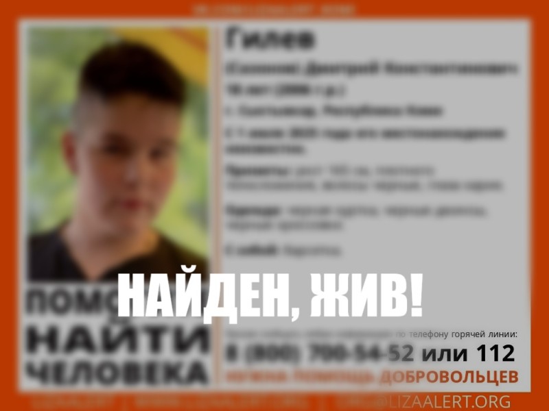 Поиски пропавшего в Сыктывкаре 18-летнего Дмитрия Гилева прекращены. О его местонахождении ничего не было известно с 1 июля.