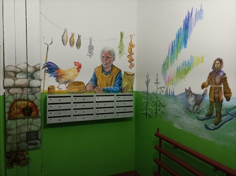 Художник Алла Глущенко из Ухты завершила работу над финальными сценами рассказа, которые теперь украшают 20-й подъезд дома.