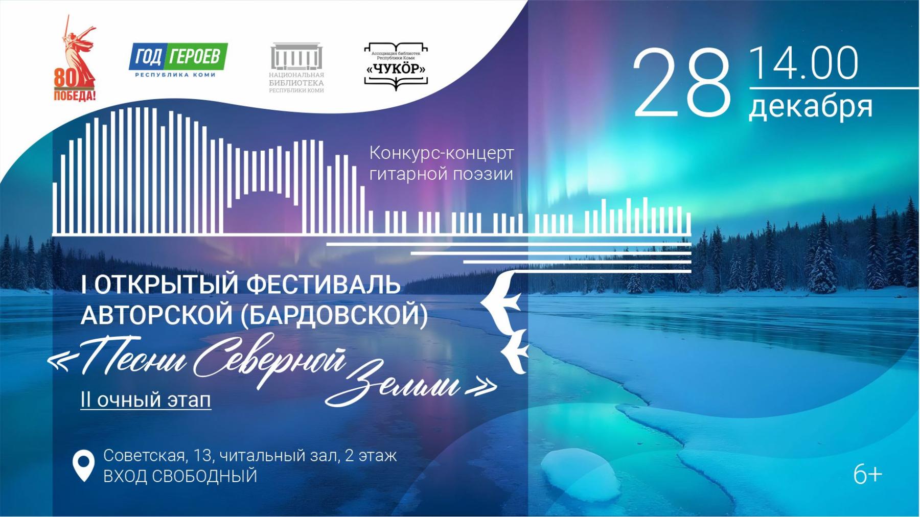 В рамках второго этапа первого открытого фестиваля авторской (бардовской) "Песни Северной Земли" состоится конкурс-концерт гитарной поэзии (6+).