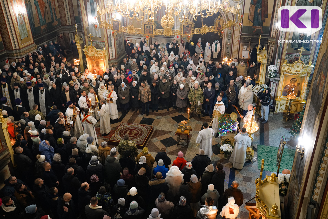 Верующие Коми отстояли Великое Повечерие, Утрени, чтение Часов и собственно Божественную литургию, на которой таинство евхаристии (или Причащения Святых Христовых таин) стремятся совершить сотни верующих, подводя итог долгому посту и ожидания главного праздника - рождения Богочеловека.