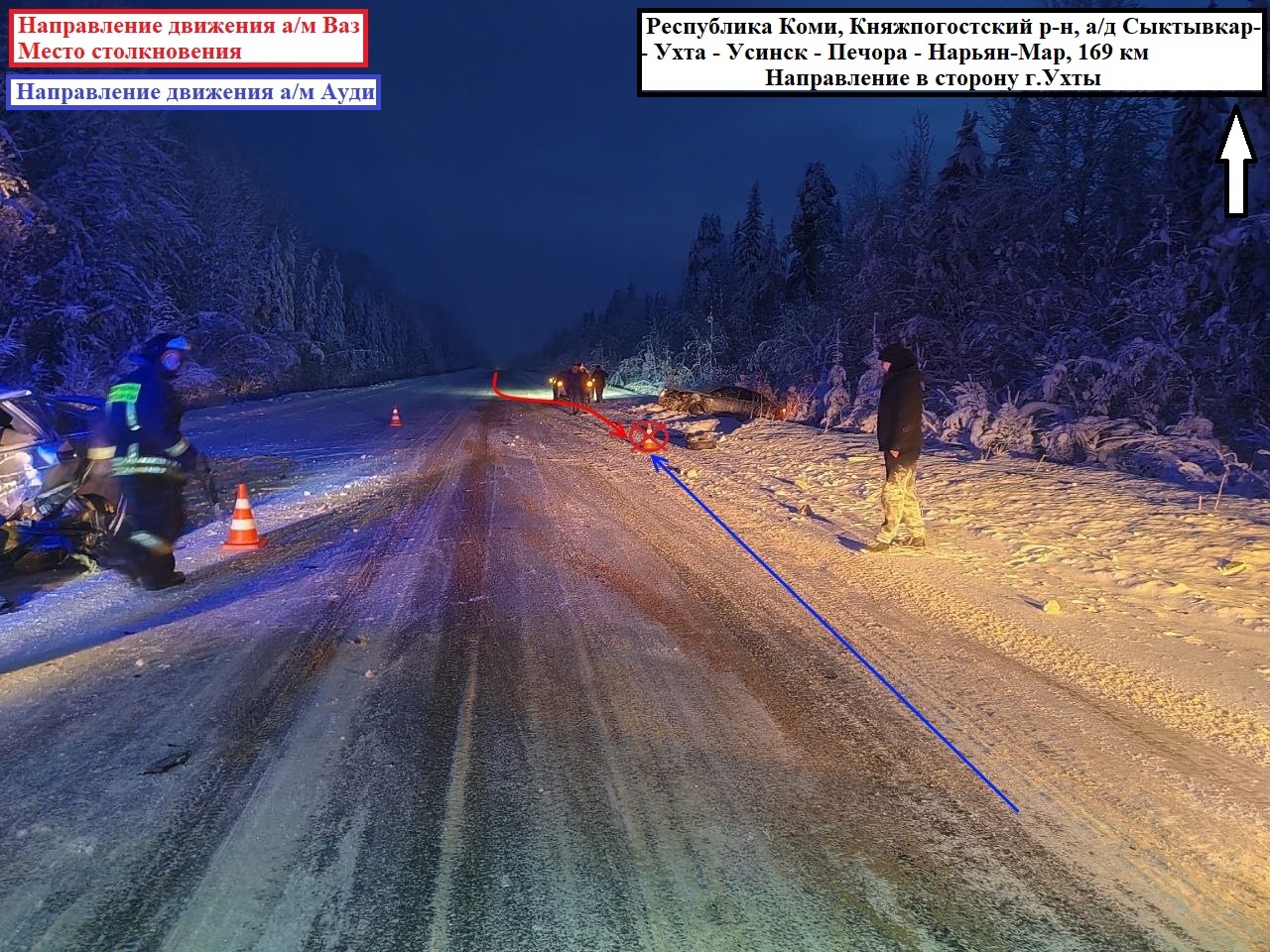 В 6:50 девушка 2007 г.р., управляя машиной ВАЗ-2112, двигалась по трассе Сыктывкар-Нарьян-Мар из Ухты в сторону столицы Коми. На 169 км она не справилась с управлением, выехала на встречную полосу, где столкнулась с Audi A4.