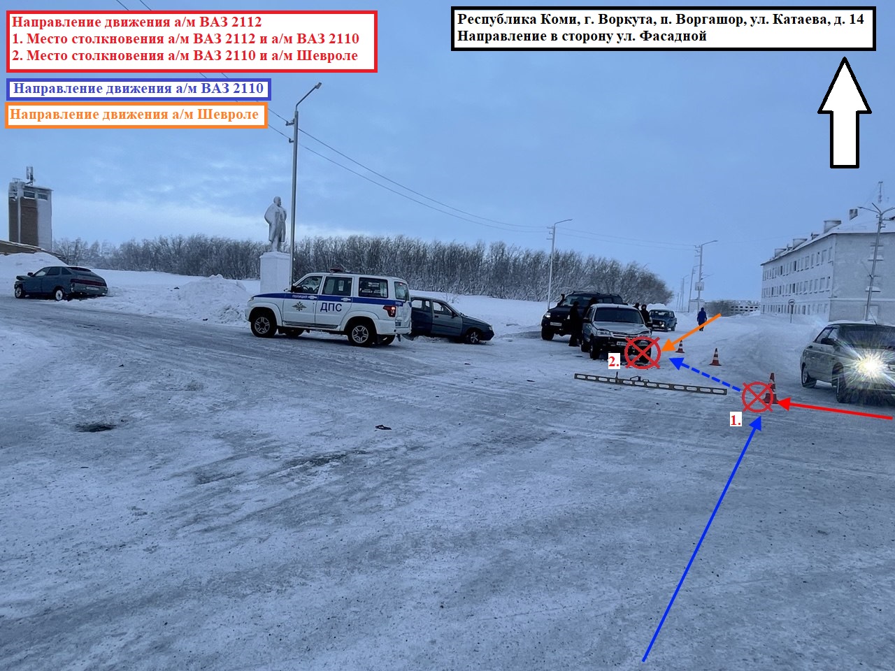 В п.Воргашор под Воркутой в двойном ДТП столкнулись два ВАЗа и Chevrolet Niva.