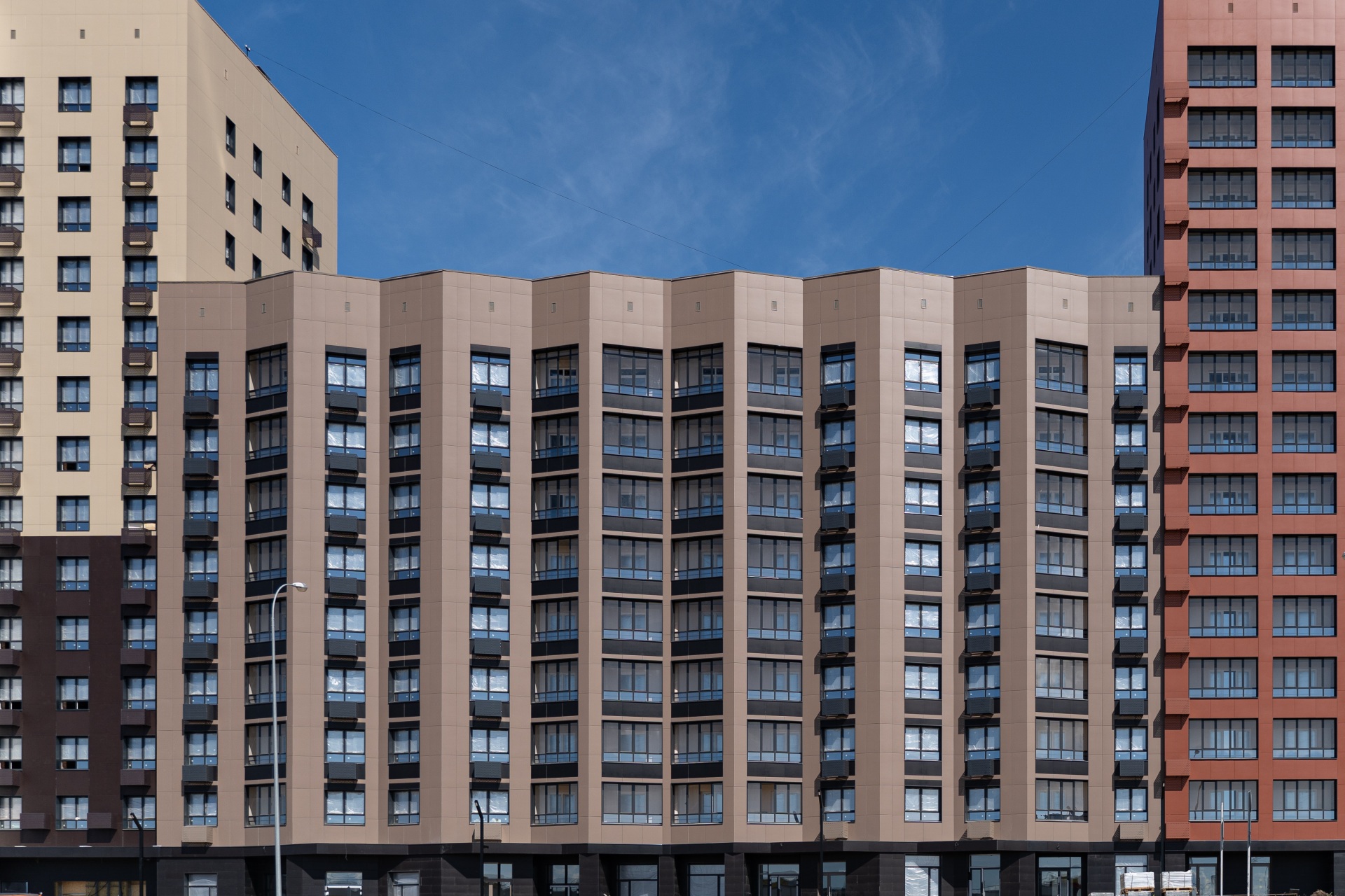 - Удобное расположение с транспортной развязкой, большими парковками, автобусными остановками, магазинами на первом этаже и близостью торговых, развлекательных, образовательных и досуговых центров.
