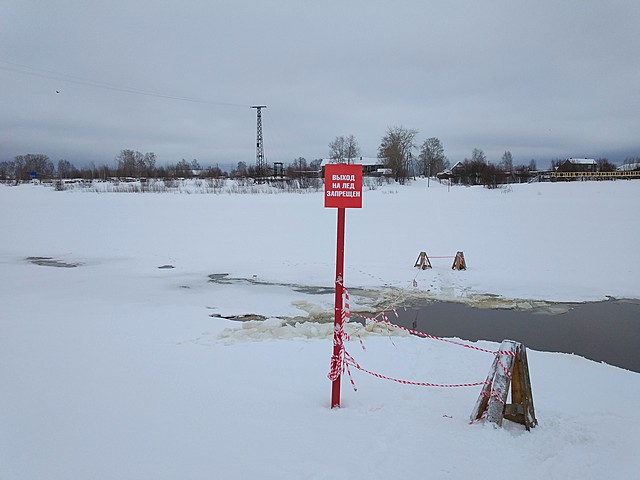Сотрудники профессиональной аварийно-спасательной службы Сыктывкара вырубили лед на месте переправы, чтобы не допустить несчастных случаев.