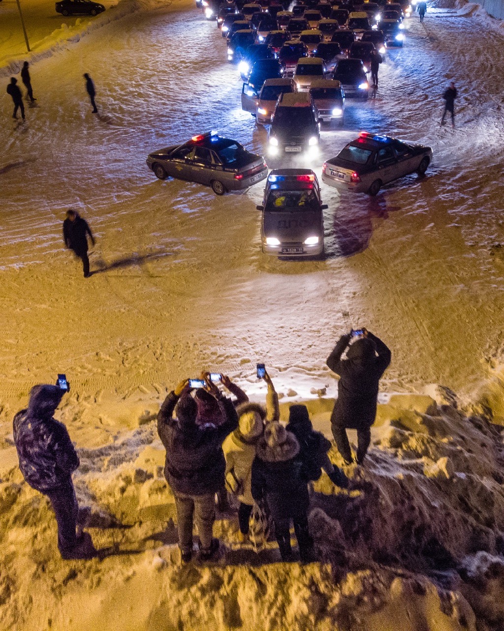 А на выходных в сопровождении Снегурочки, фигуристов и боксеров пришел на новый стадион в Давпоне.
