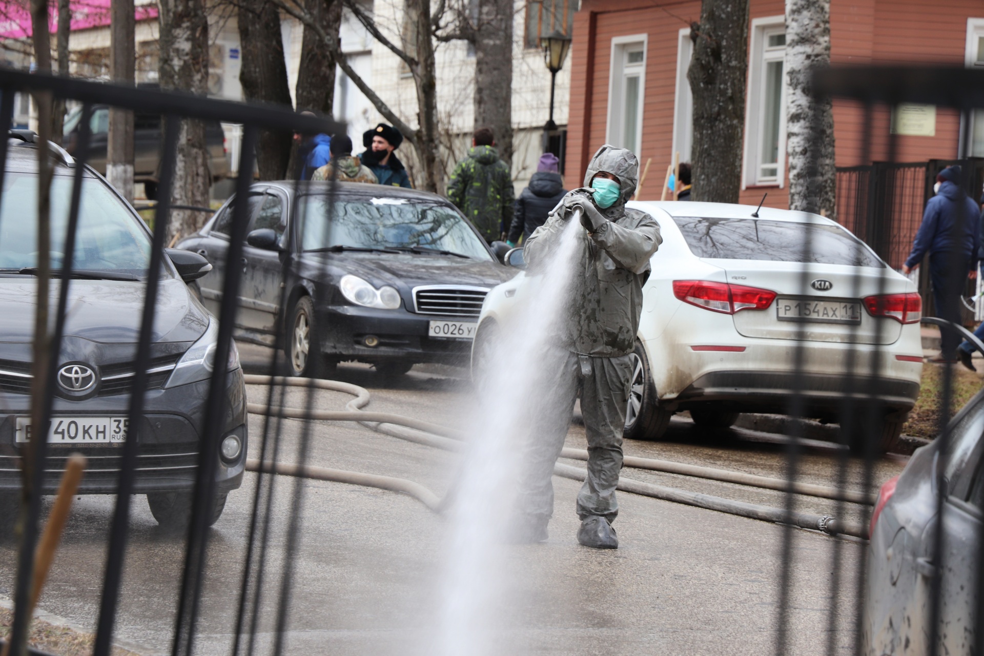 Администрацией города поставлена задача подрядной организации ООО "УК "Сыктывкарская" провести дезинфекцию мест массового скопления людей.