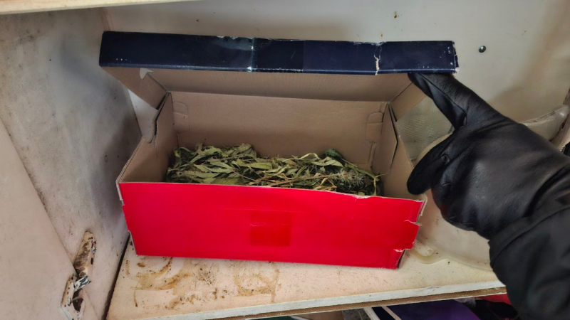 Полицейские обнаружили и изъяли 20 стеклянных банок с высушенными листьями и фрагментами соцветий, а также 4 картонные коробки со стеблями растений.